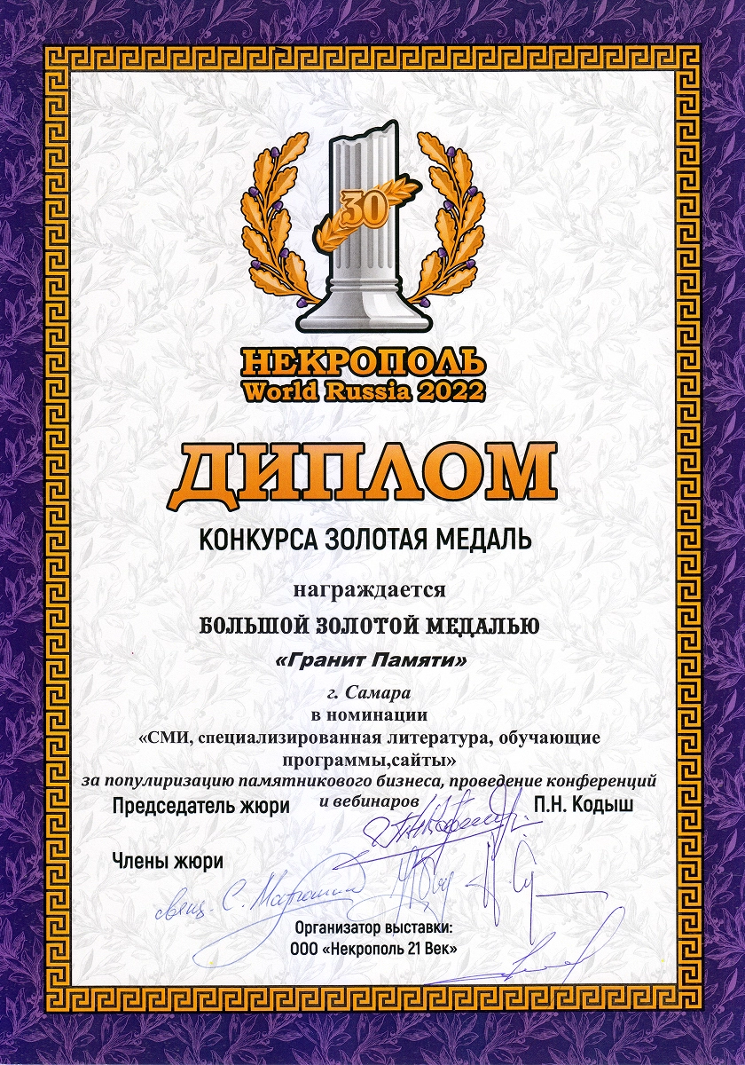 Журнал, который рассказывает о работе мемориальщиков, сообщает читателям о новых идеях, услугах и товарах. В журнале также можно узнать об изменениях в законах, о том, как работать с клиентами, и о других важных вещах, которые касаются нашей работы. Выпускается один раз в год.