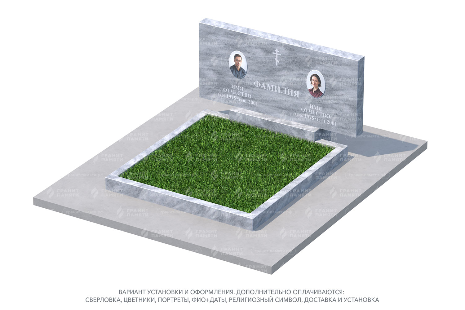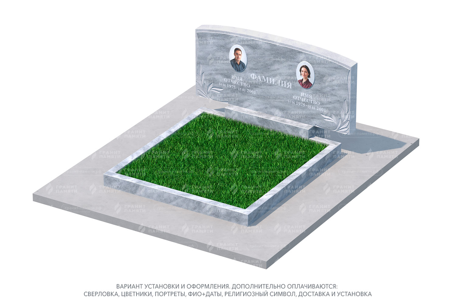 Мы можем добавить портреты на фотокерамике, гравировку с именами, датами и эпитафиями, а также декоративные элементы.