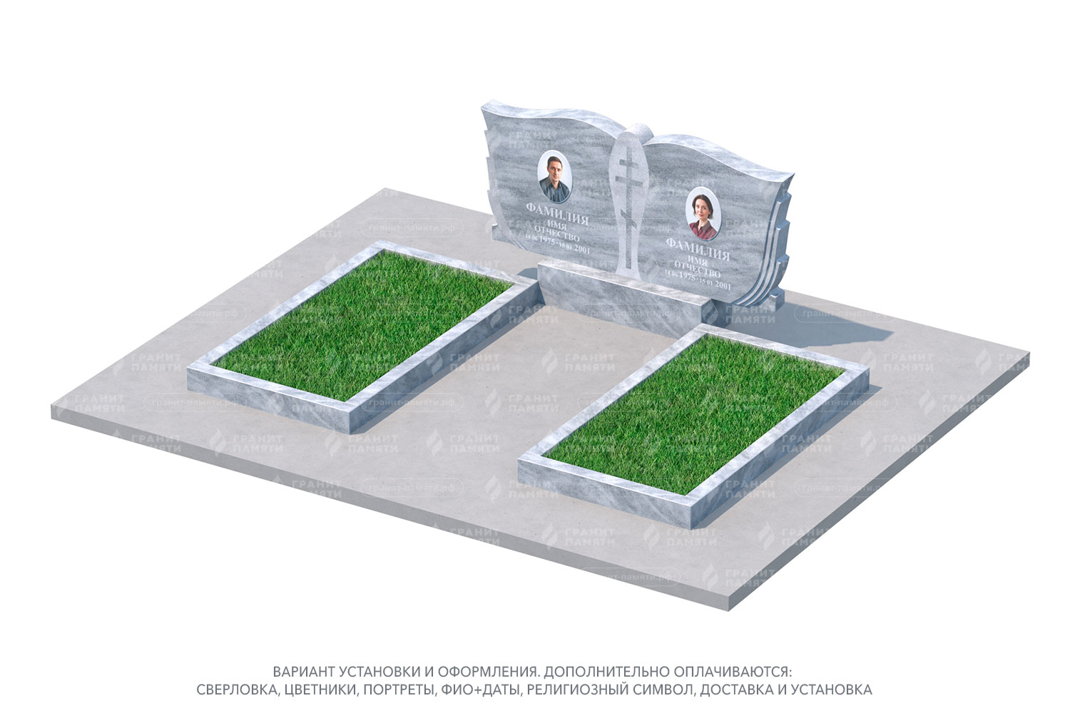 Какие элементы можно добавить к двойному памятнику?